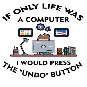 R93,00If only life was a computer I would “UNDO” the nasty bits of my life and “REDO” the best parts of my life. In worst case scenario I would just “REBOOT” and start all over again. Unfortunately life isn’t. This design will help us to be careful of every life choice we make as it can never be reversed.