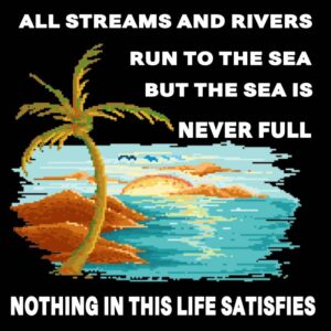 R77,00This design was adapted from Ecclesiastes 1:7 which says “All streams flow into the sea, yet the sea is never full. To the place the streams come from, there they return again”. Get to a point in life where you say, “I am now content with everything” otherwise you will never enter a time of REST.